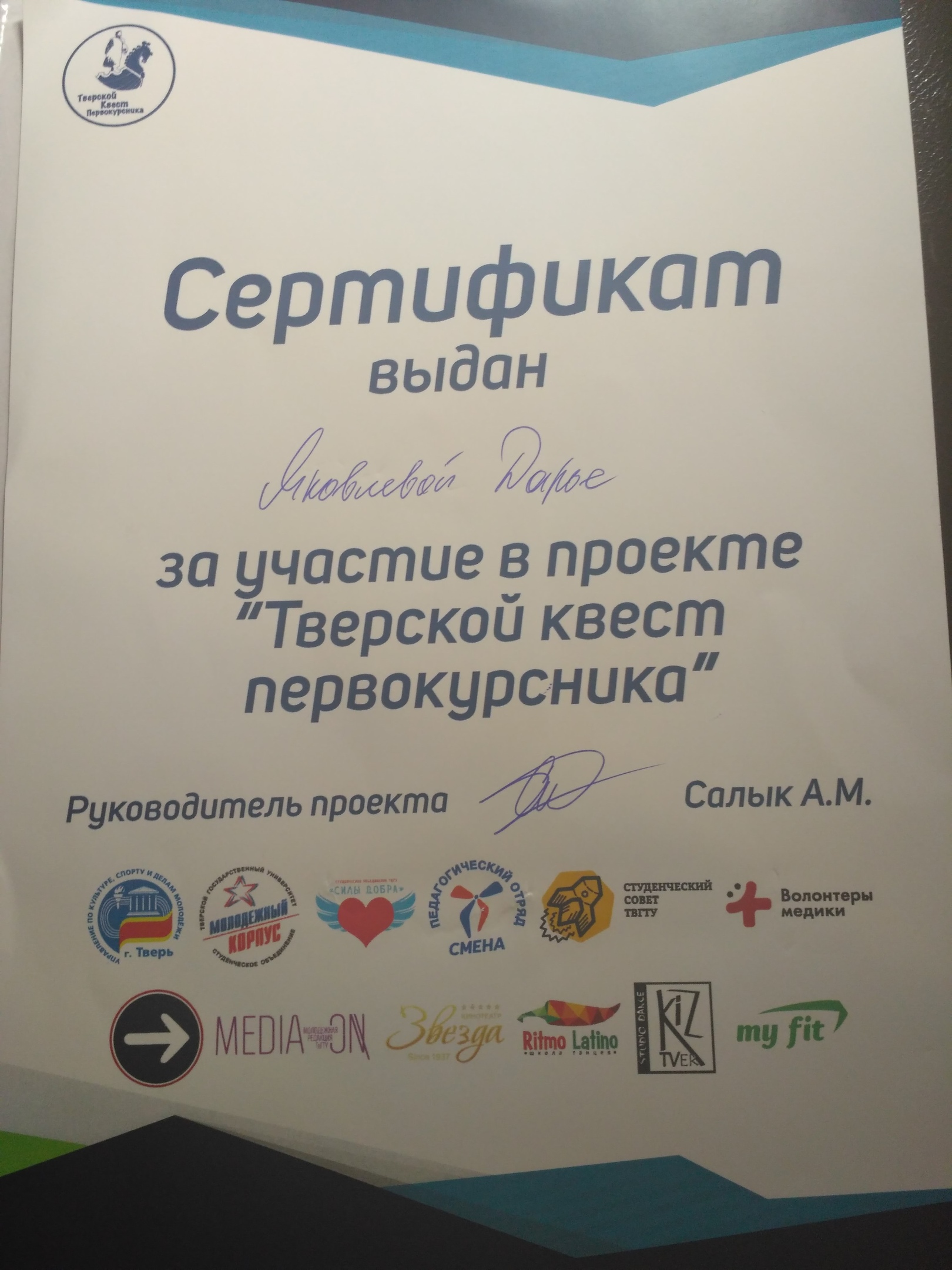 1.3 Участие в проекте "Тверской квест первокурсника"