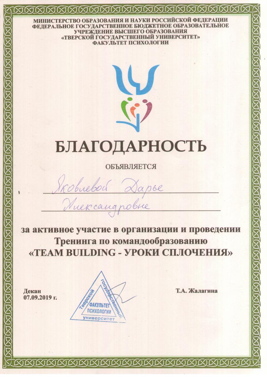4.4 Участие в организации тренинга по командообразованию