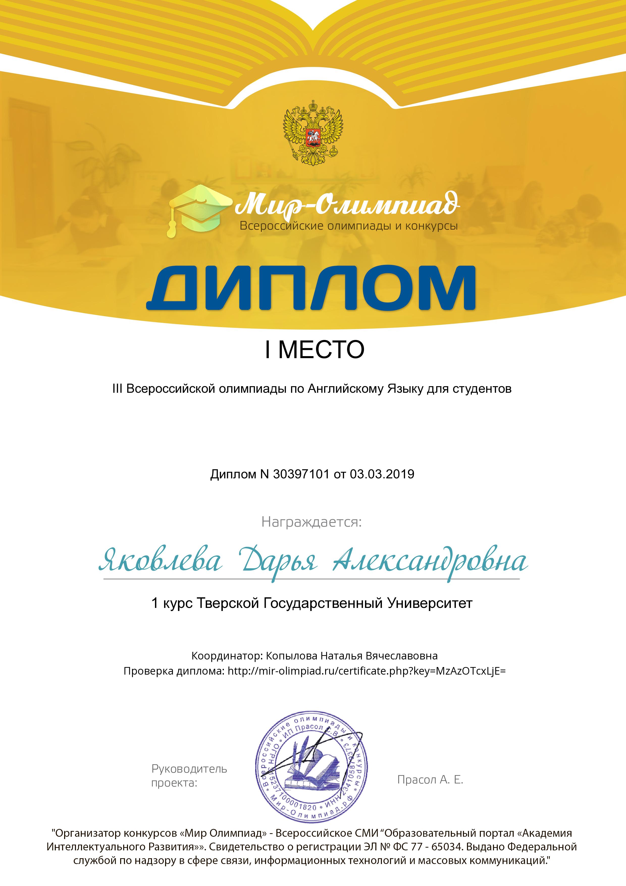 2.3 1 место в III Всероссийской олимпиаде по английскому языку