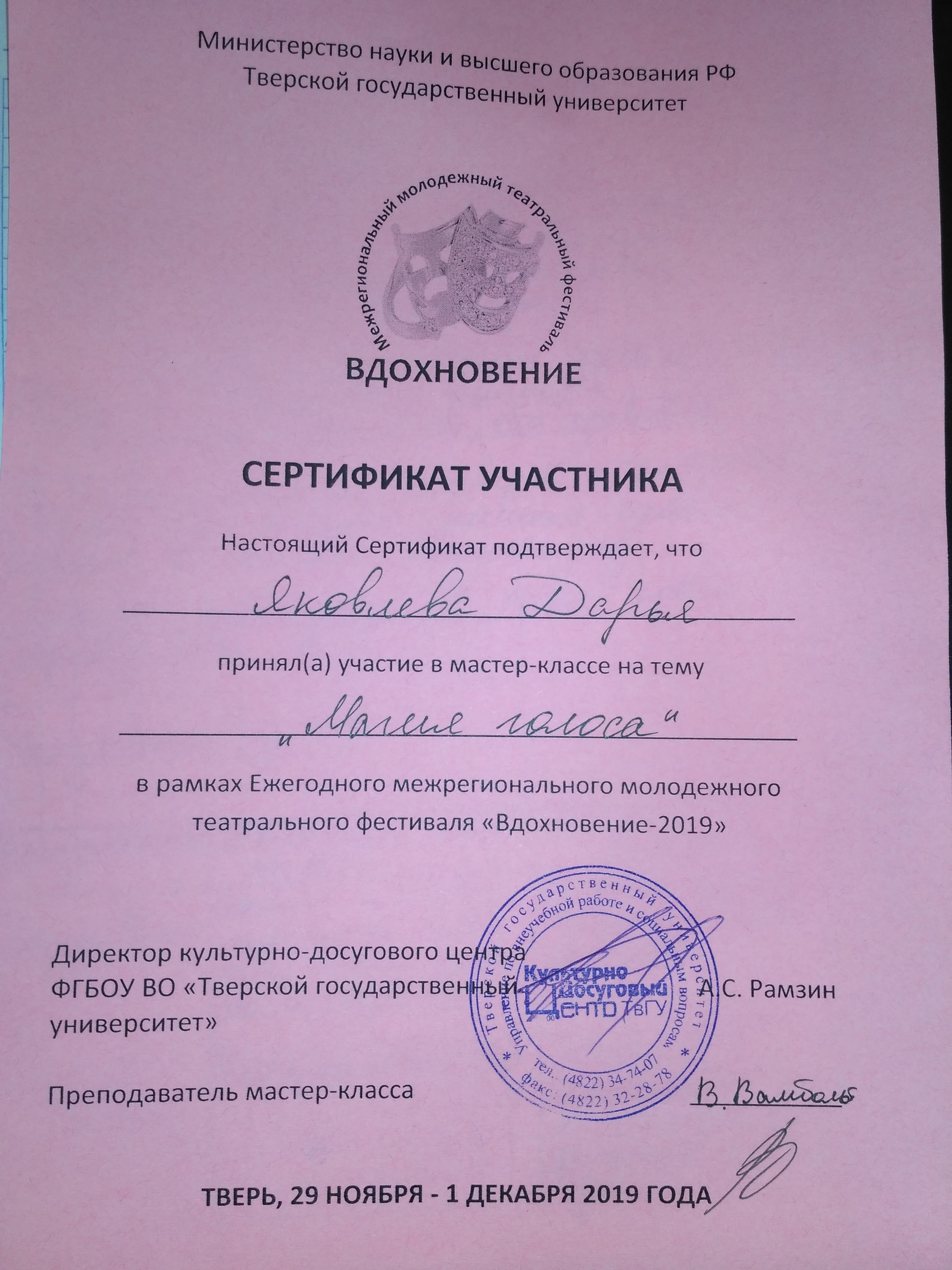 Участие в мастер-классе в рамках ежегодного межрегионального молодежного театрального фестиваля "Вдохновение-2019"