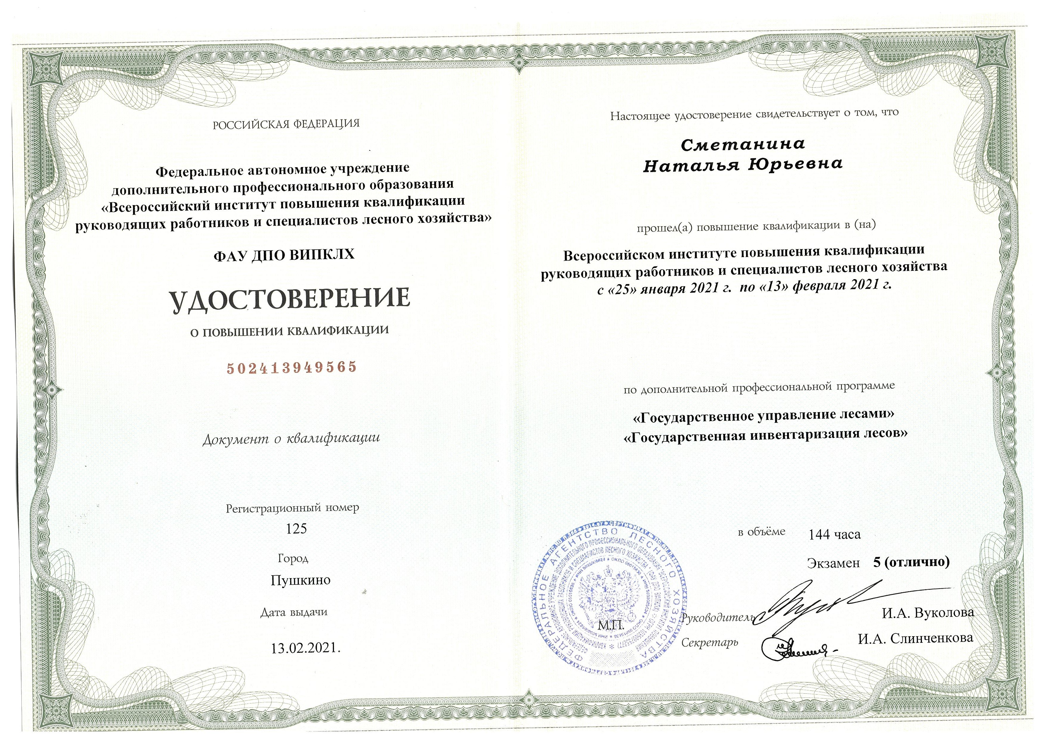 6. Повышение квалификации руководящих работников и специалистов лесного хозяйства по дополнительной профессиональной программе "Государственное управление лесами" "Государственная инвентаризация лесов" январь-февраль 2021 года.
