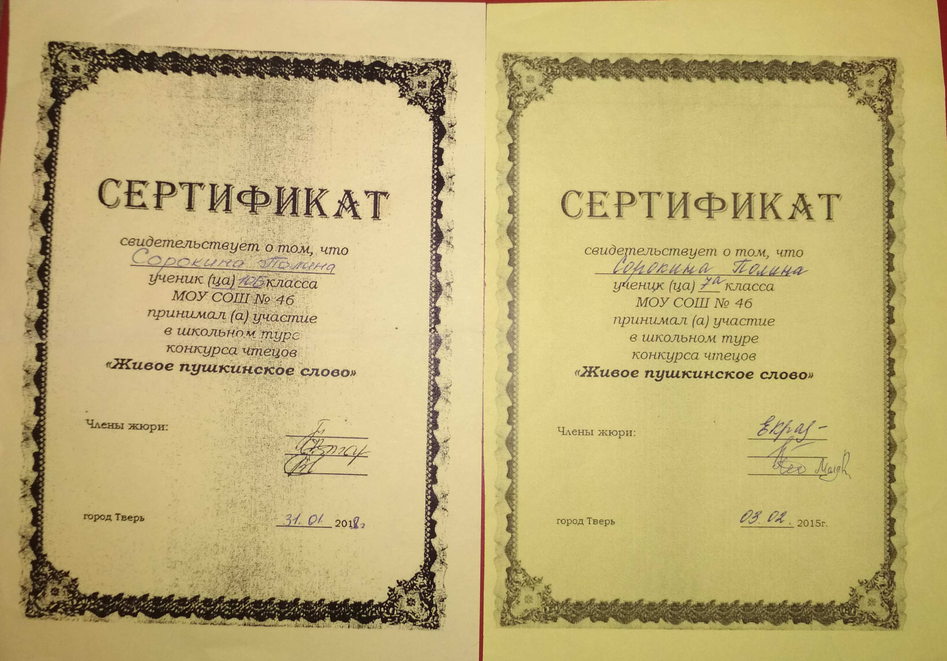 За время учебы принимала участие в олимпиадах по предметам: русский язык, литература, английский язык; литературных чтениях и концертах.  Посещала курсы по английскому языку в школе "Виста".