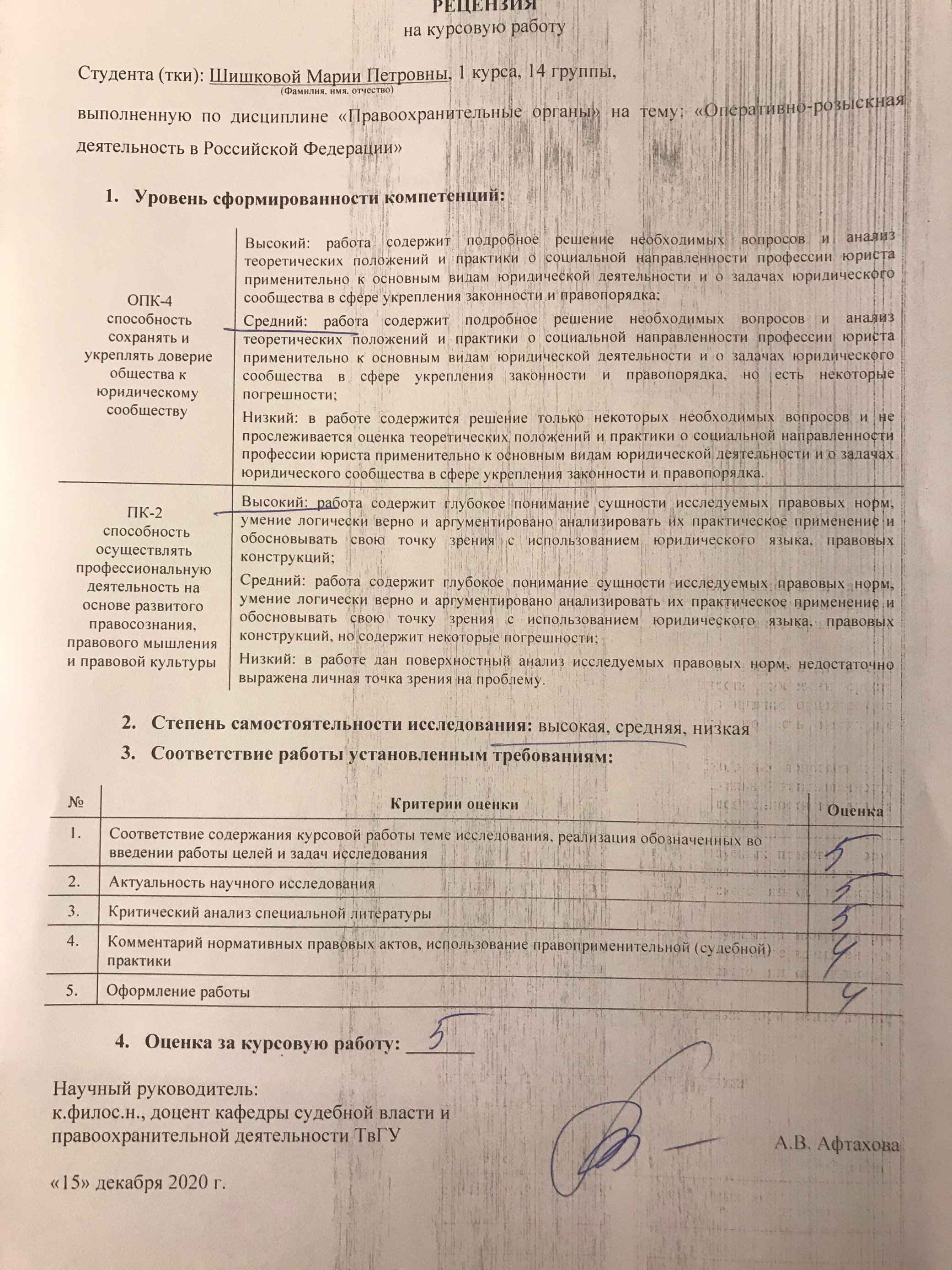 Рецензия на курсовую работу по дисциплине Правоохранительные органы