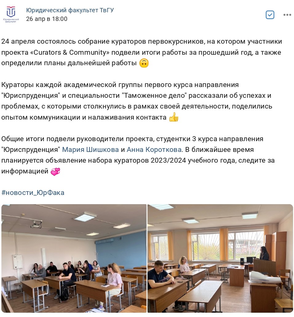 Подробнее о нашем проекте можно узнать здесь: https://vk.com/@law.tversu-uznaembolshe-curators-communityСсылки на внешний сайт.