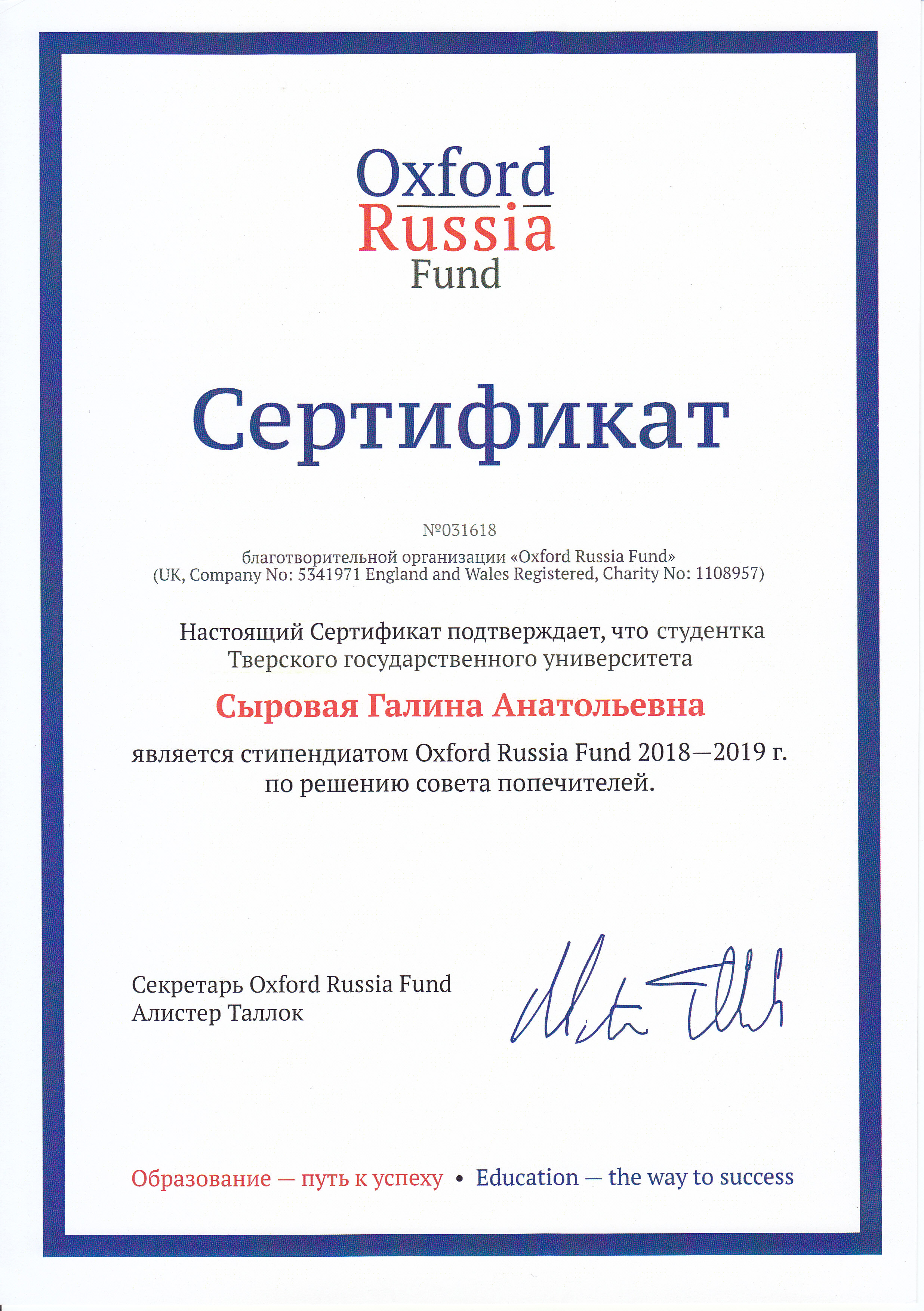 Сыровая Г.А. Сертификат стипендиата Оксфордского Российского Фонда.jpg