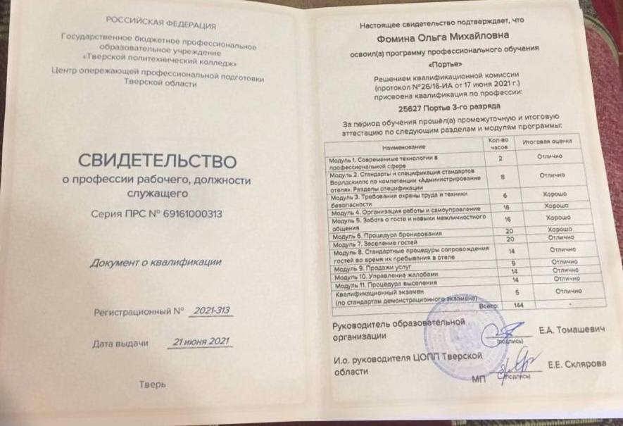 В школу приезжали представители Тверского колледжа с предложением пройти курсы портье за лето. При прохождении курса нас научили: этикету, правилам как вести себя в чрезвычайной ситуации, как заселять постояльцев и как с ними общаться и многое другое. После обучения мы все сдали экзамен (на 1 фото) и получили свои аттестаты (фото 2 и 3) портье2.jpg