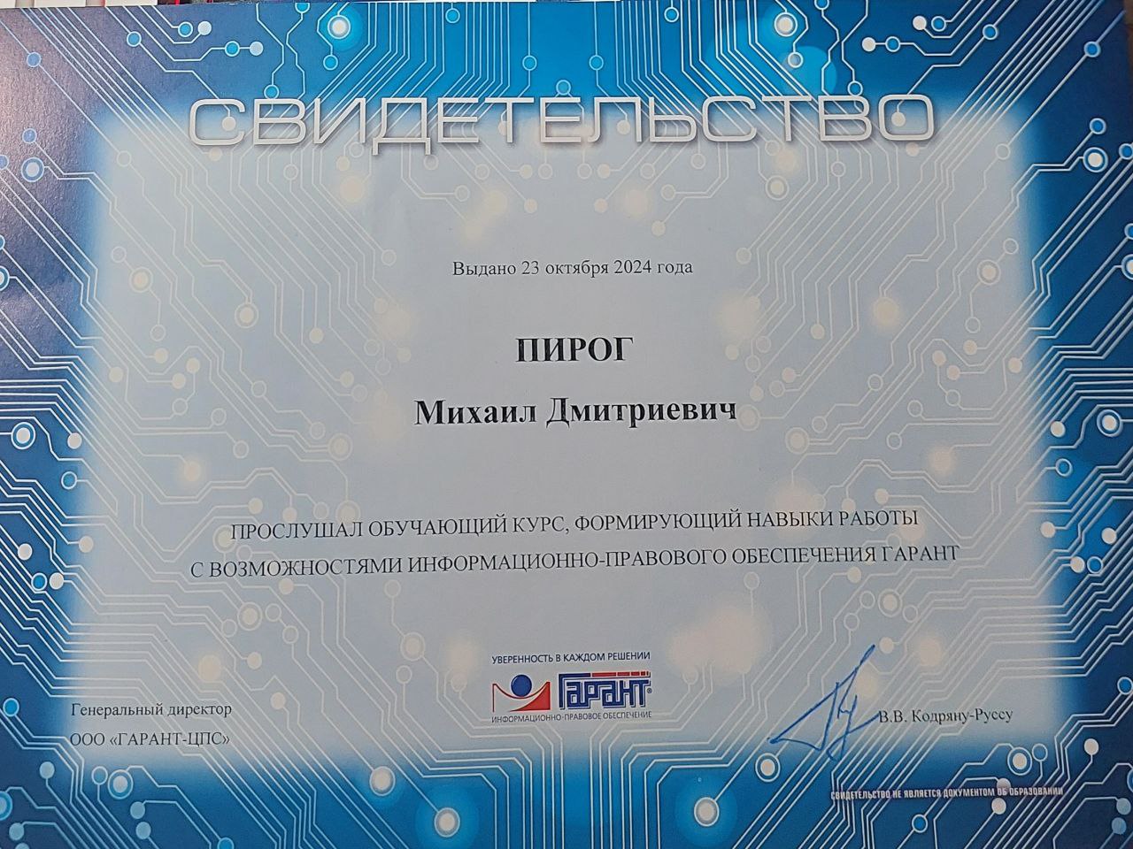 Пройденное обучение в системе ГАРАНТ