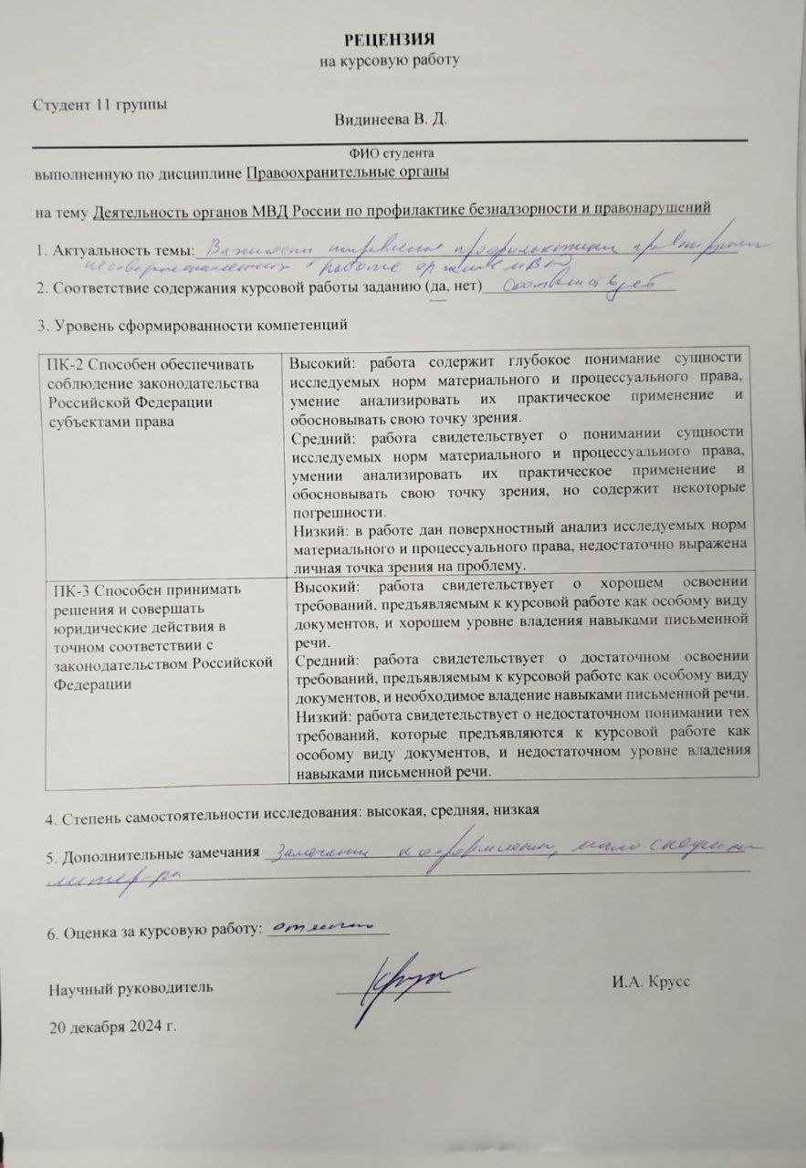 Курсовая работа по дисциплине «Правоохранительные органы»
