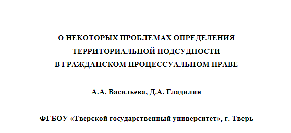 Статья "О некоторых проблемах определения территориальной подсудности в гражданском процессуальном праве"