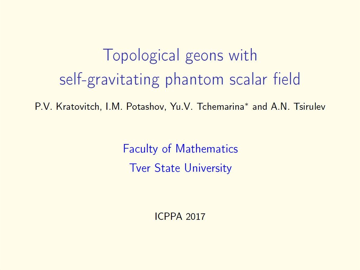 3. The 3rd International Conference on Particle Physics and Astrophysics (ICPPA-2017), National Research Nuclear University “MEPhI”, Moscow, 2-5 October 2017.