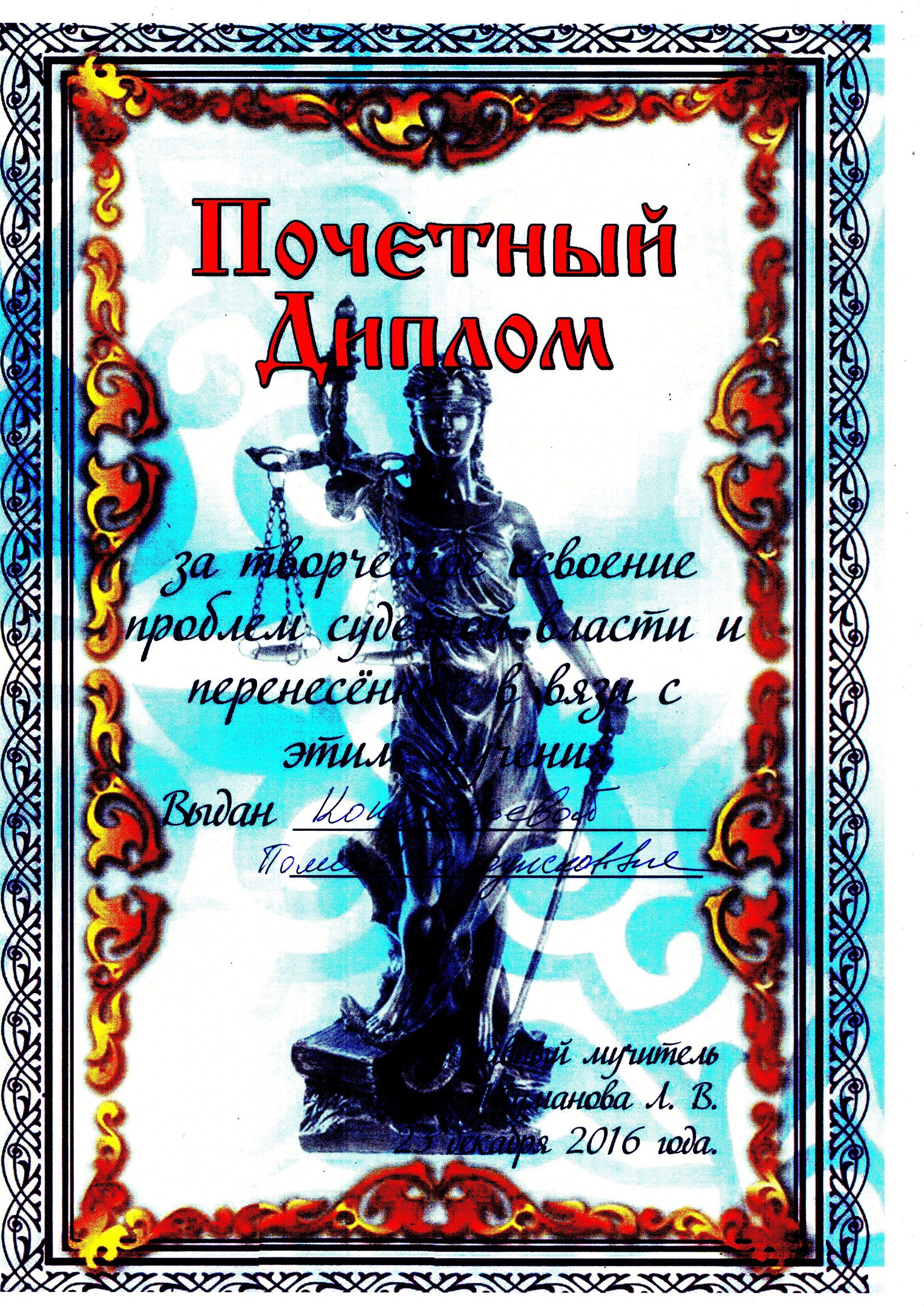 Освоение курса по выбору "Судебная власть" у Тумановой Л.В.