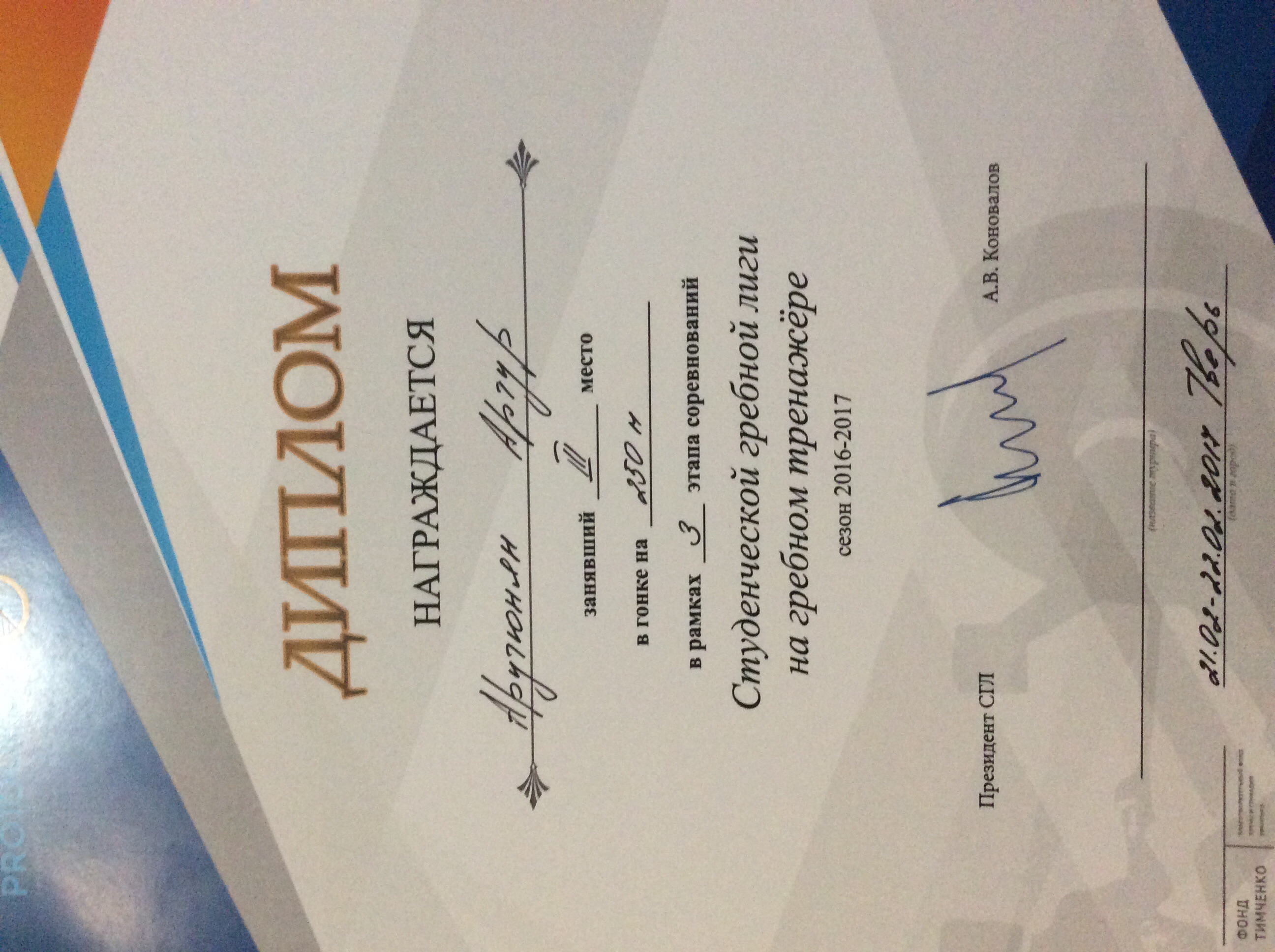 1.5. Участие в гонке на 250 м в рамках 3 этапа соревнований СГЛ на гребном тренажере