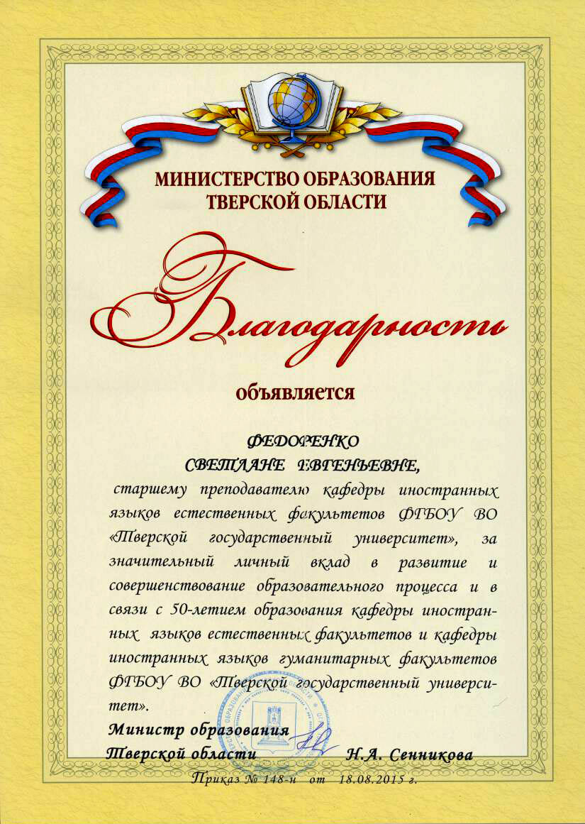 Федоренко Светлана Евгеньевна- 1. Общая информация