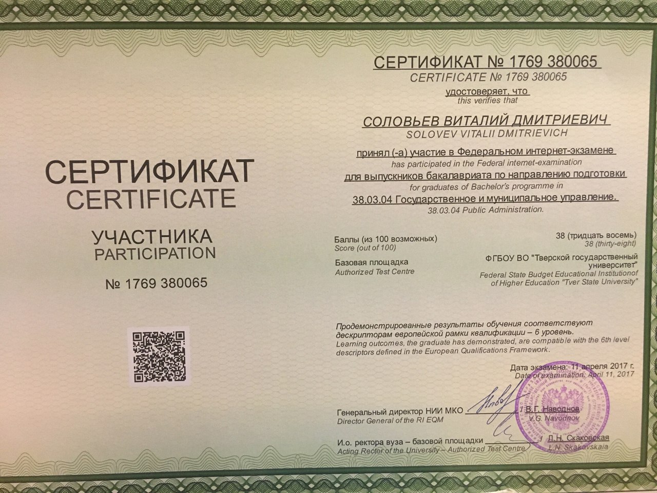Сертификат участника ФИЭБ