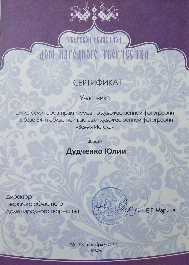 1. Прохождение цикла семинаров-практикумов по художественной фотографии.