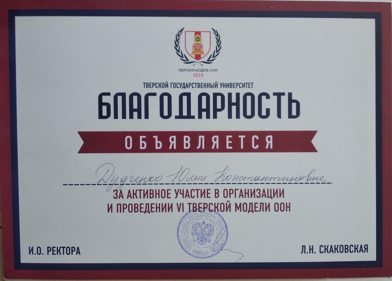 2. Участие в организации и проведении VI Тверской Модели ООН. Я являлась главным фотографом на Совете по правам человека: моими задачами были заполнение альбомов официальной страницы Модели ООН Вконтакте, а также предоставление фотографий для материалов ежедневной газеты.