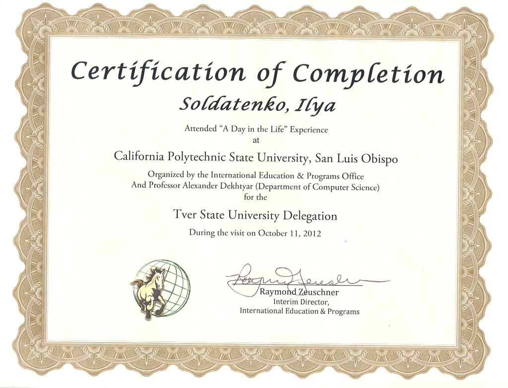 2. Семинар «A Day in the Life Experience», 11 октября 2012 года, Калифорнийский политехнический государственный университет, г. Сан-Луис Обиспо (США).
