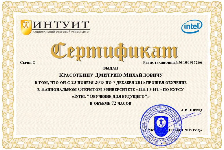 Курс дополнительного образования "INTEL "Обучение для будущего"