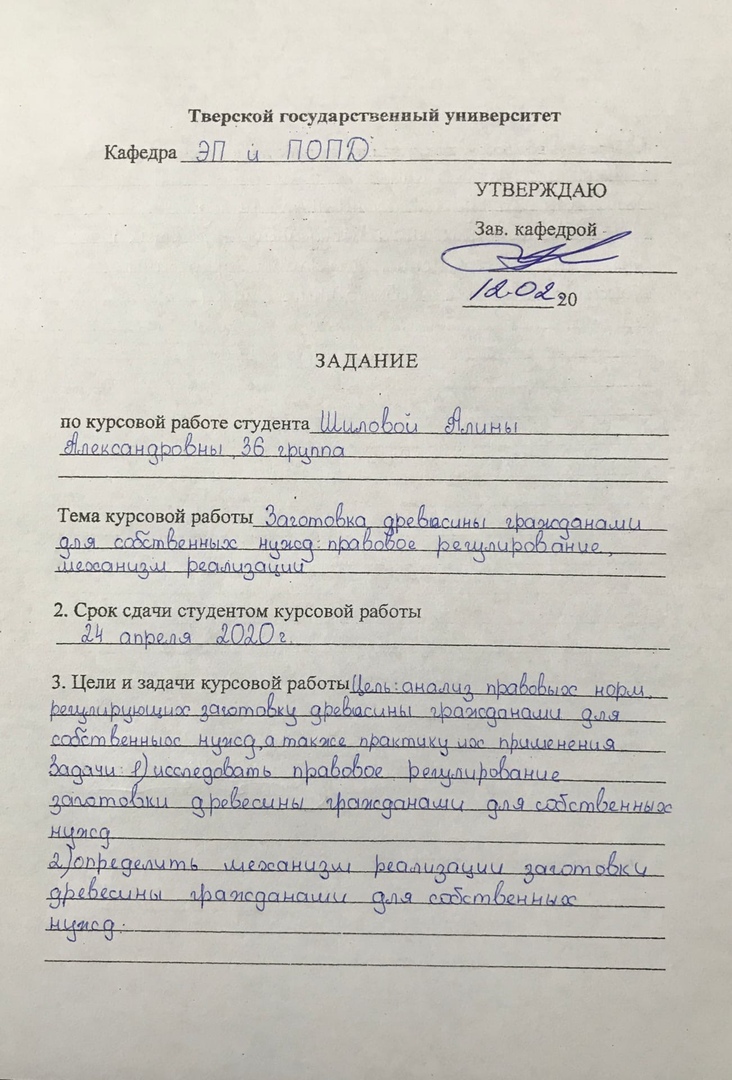 Курсовая работа по экологическому праву на тему "Заготовка древесины гражданами для собственных нужд: правовое регулирование, механизм реализации".